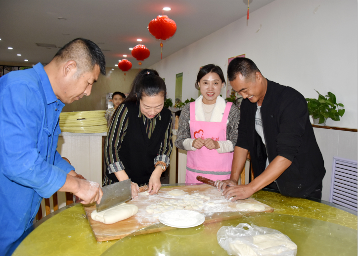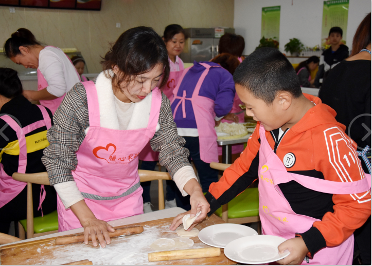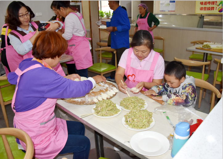 有些大姐還帶了自己家的孩子一起參加這次公益活動(dòng),以身作則,以實(shí)際行動(dòng)教育孩子們尊老愛老。孩子們也非?;钴S,不管是包餃子還是搟皮,都積極參與。