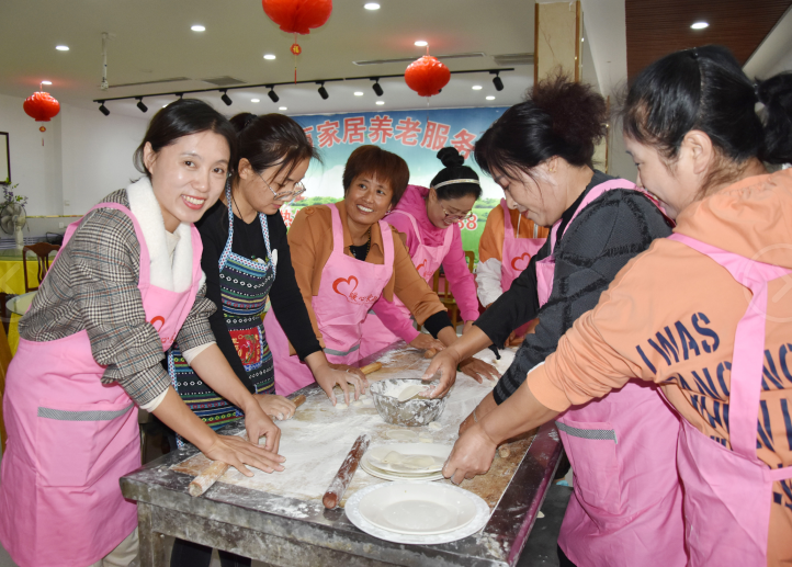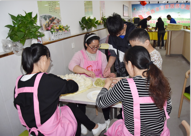 組織并籌備了一個(gè)假期,今天早上八點(diǎn)半,大家?guī)е约簻?zhǔn)備的萊陽(yáng)梨、八寶粥、牛奶、麥片,各種水果等,在我們的美女領(lǐng)導(dǎo)葛經(jīng)理帶領(lǐng)下,我們家的眾多大姐浩浩蕩蕩的來到了萬家居敬老院,陪老人們聊天,詢問老人的身體狀況,并為敬老院的老人們包餃子,和他們分享蛋糕,陪老人們度過一個(gè)充實(shí)的重陽(yáng)節(jié)。