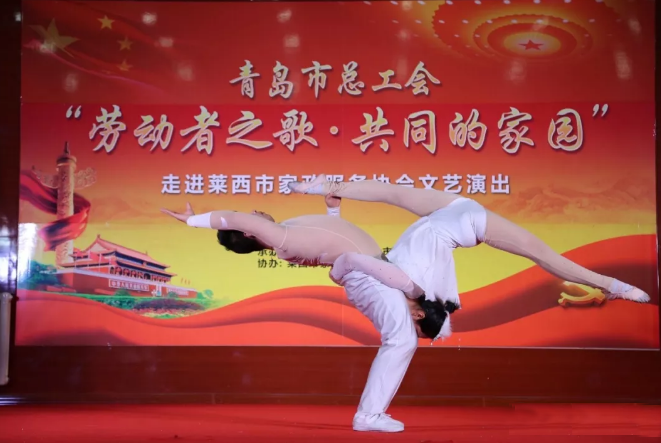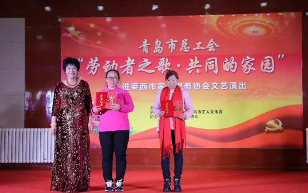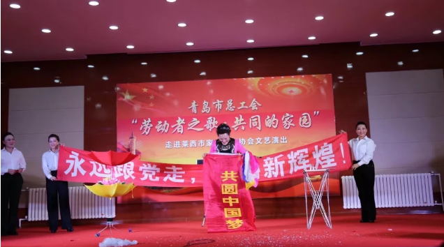 金風(fēng)送爽,萬里河山披錦繡;不忘初心,豪情萬丈頌祖國(guó)。為慶祝新中國(guó)成立70周年華誕,在全市職工中營(yíng)造出歡樂祥和的節(jié)日氛圍,青島市總工會(huì)“勞動(dòng)者之歌 共同的家園”文藝演出團(tuán)走進(jìn)萊西市家政服務(wù)協(xié)會(huì)進(jìn)行專場(chǎng)文藝慰問演出,12月29號(hào)下午1點(diǎn)30分,在水集街道辦事處禮堂隆重開幕。