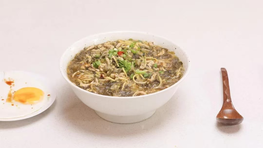 - 做法:雪菜浸泡去咸后切碎;肉絲加鹽拌勻。爆香蔥花、姜末,炒肉絲至變色,加入雪菜調(diào)味。面條煮熟后加入高湯,覆蓋雪菜肉絲即可。