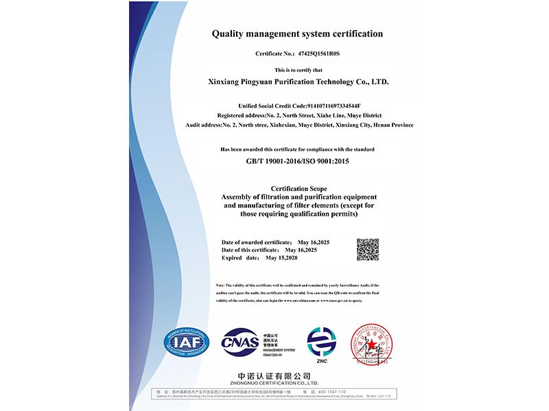 質(zhì)量管理體系認證證書